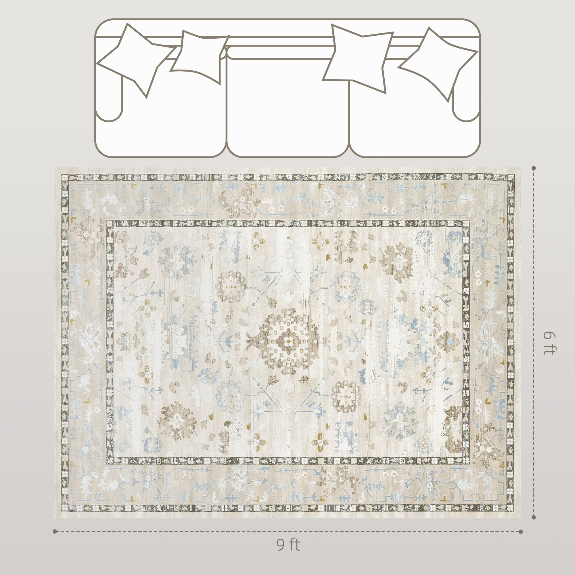 Enhance your space with the HOMCOM area rug, made from faux cashmere, for a plush, soft touch. A great rug for the bedroom or living room. This boho rug showcases intricate patterns in earthy tones and is fully machine washable for easy maintenance. Enjoy secure footing with integrated rug grippers that minimize slipping, making it a cozy and fashionable addition to any room.