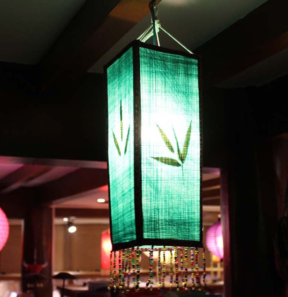 National Style Cloth Lantern With Tassel Creative Handmade Home Decor Painted Lamp Shade, Green