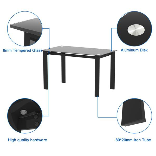 Modern tempered glass black dining table, simple rectangular metal table legs living room kitchen table