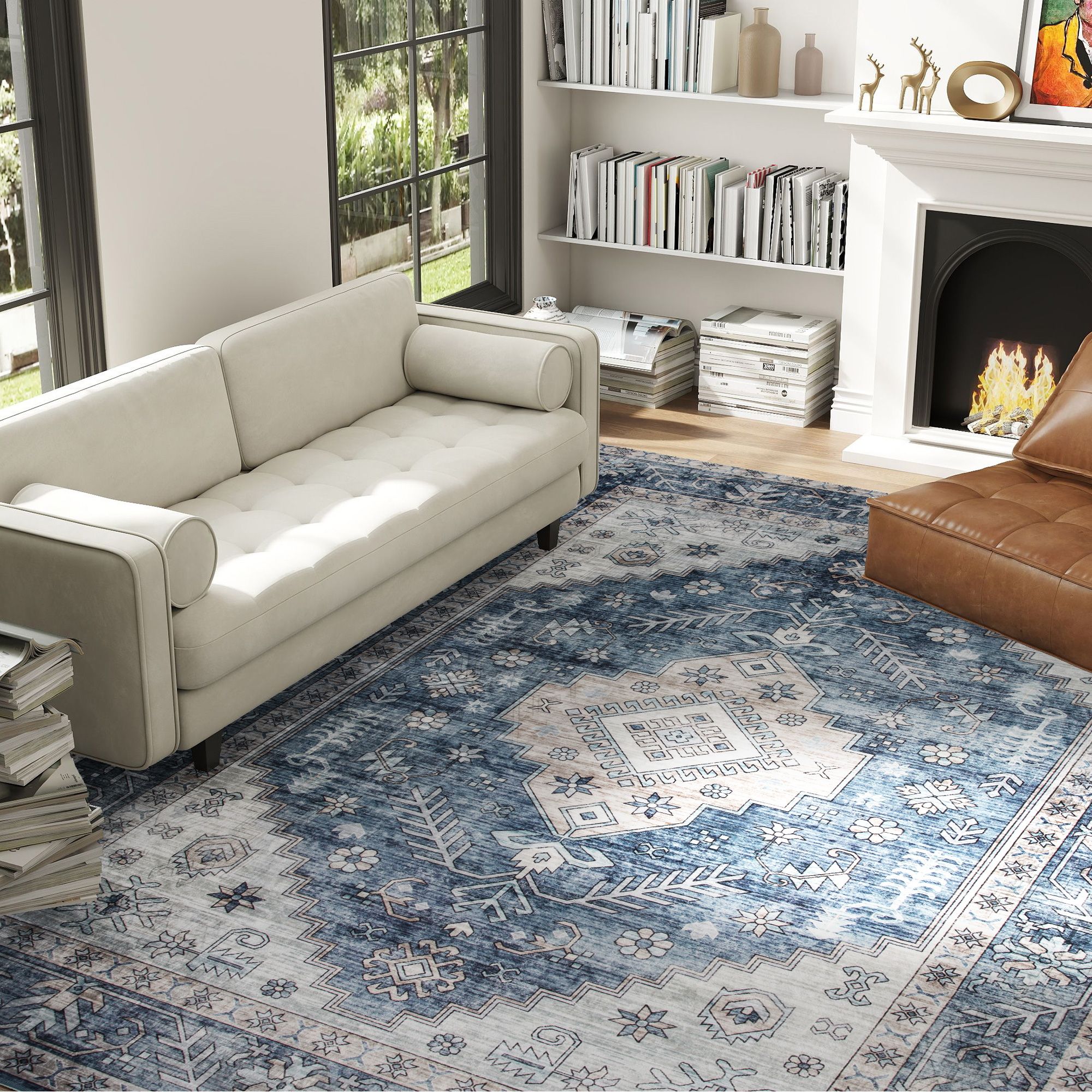 3.- Secure and Safe Placement: The non-slip backing keeps this vintage rug in place, reducing the risk of slips, making it great for busy areas or homes. Whether in the living room, bedroom, dining area, or hallway, it provides both safety and style