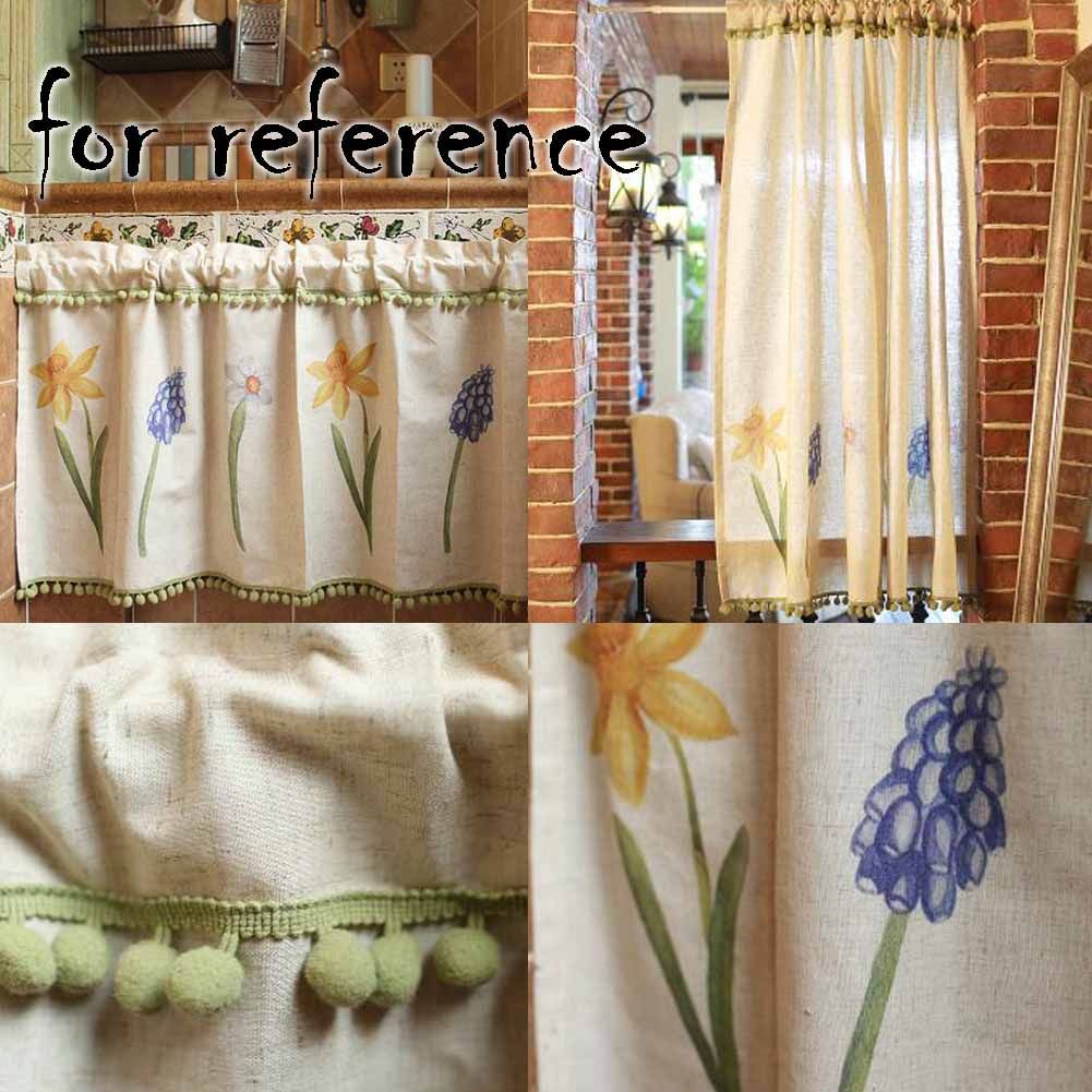 2.Package: 1 piece half window curtain. Material: linen and cotton.