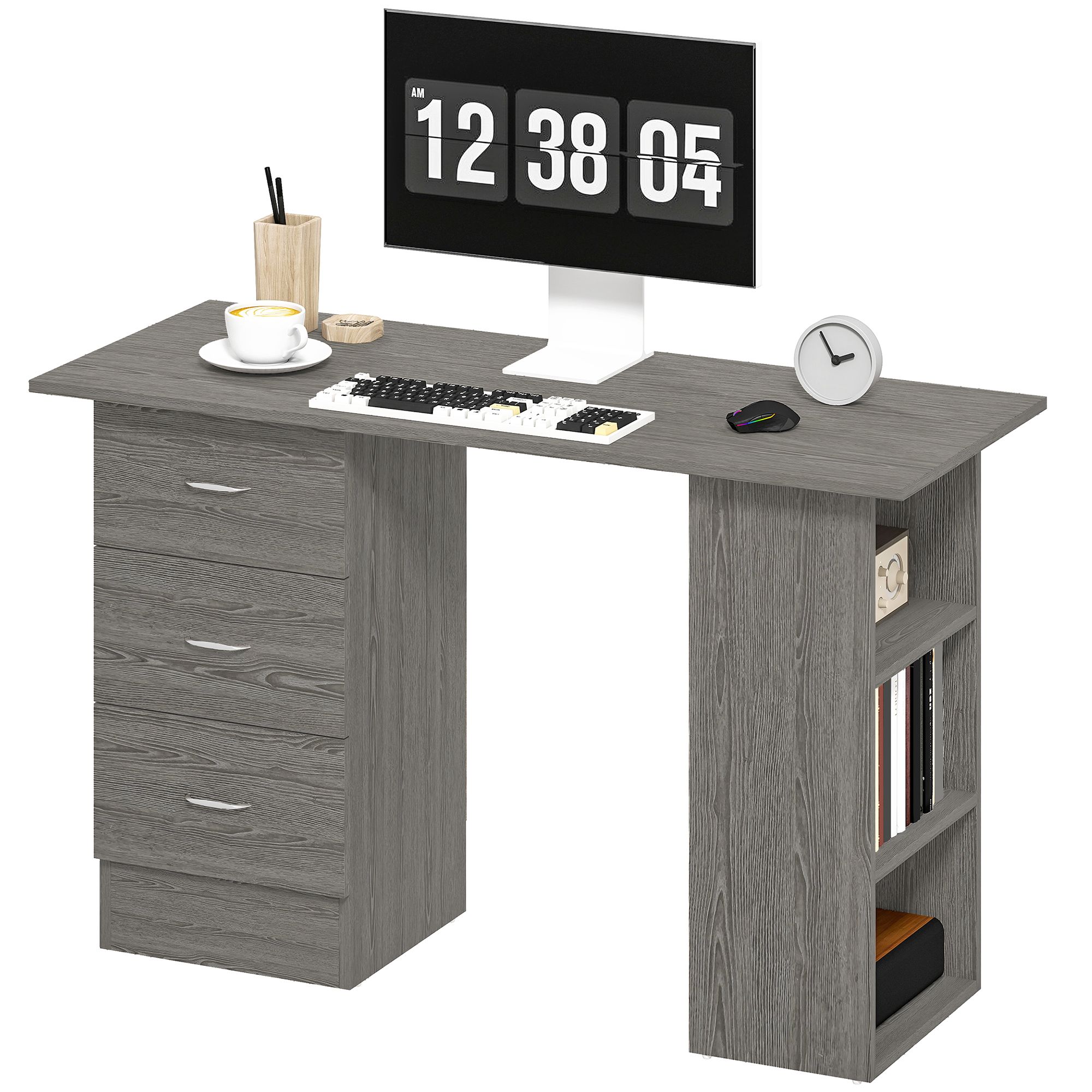47 Inches Home Office Desk with 3-Tier Storage Shelves, Computer Desk with Drawers, Study Writing Table, Grey 47 Inches Home Office Desk with 3-Tier Storage Shelves, Computer Desk with Drawers, Study Writing Table, Grey 47 Inches Home Office Desk with 3-Tier Storage Shelves, Computer Desk with Drawers, Study Writing Table, Grey