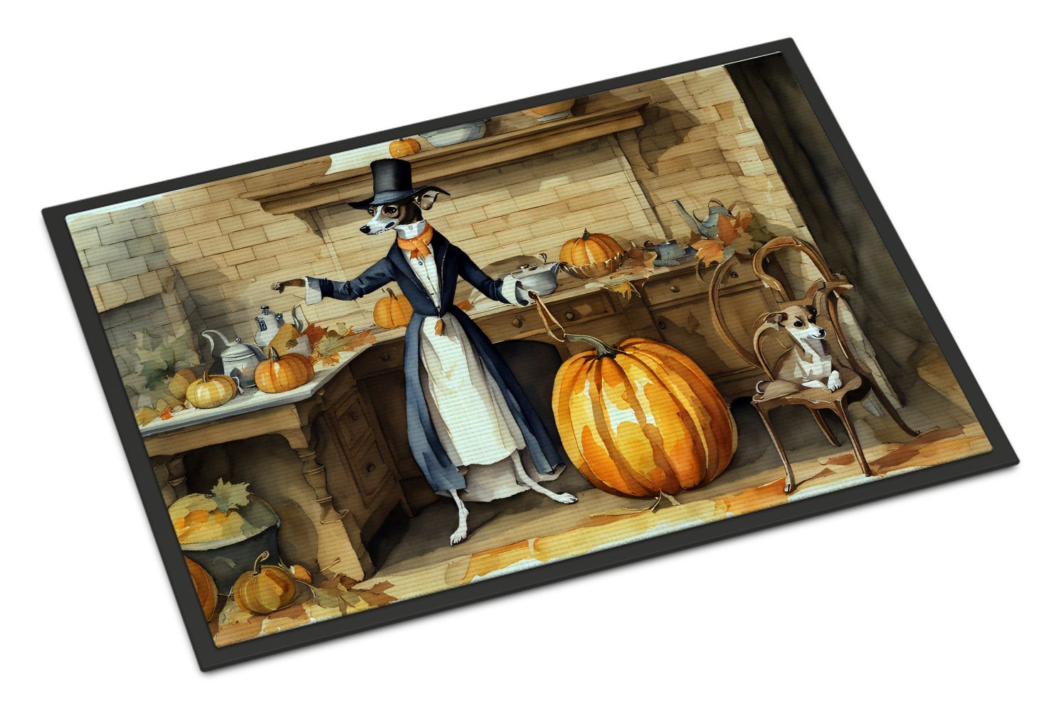 NEW Italian Greyhound Fall Kitchen Pumpkins Doormat Front Door Mat Indoor Outdoor Rugs for Entryway, Non Slip Washable Low Pile, 18H X 27W