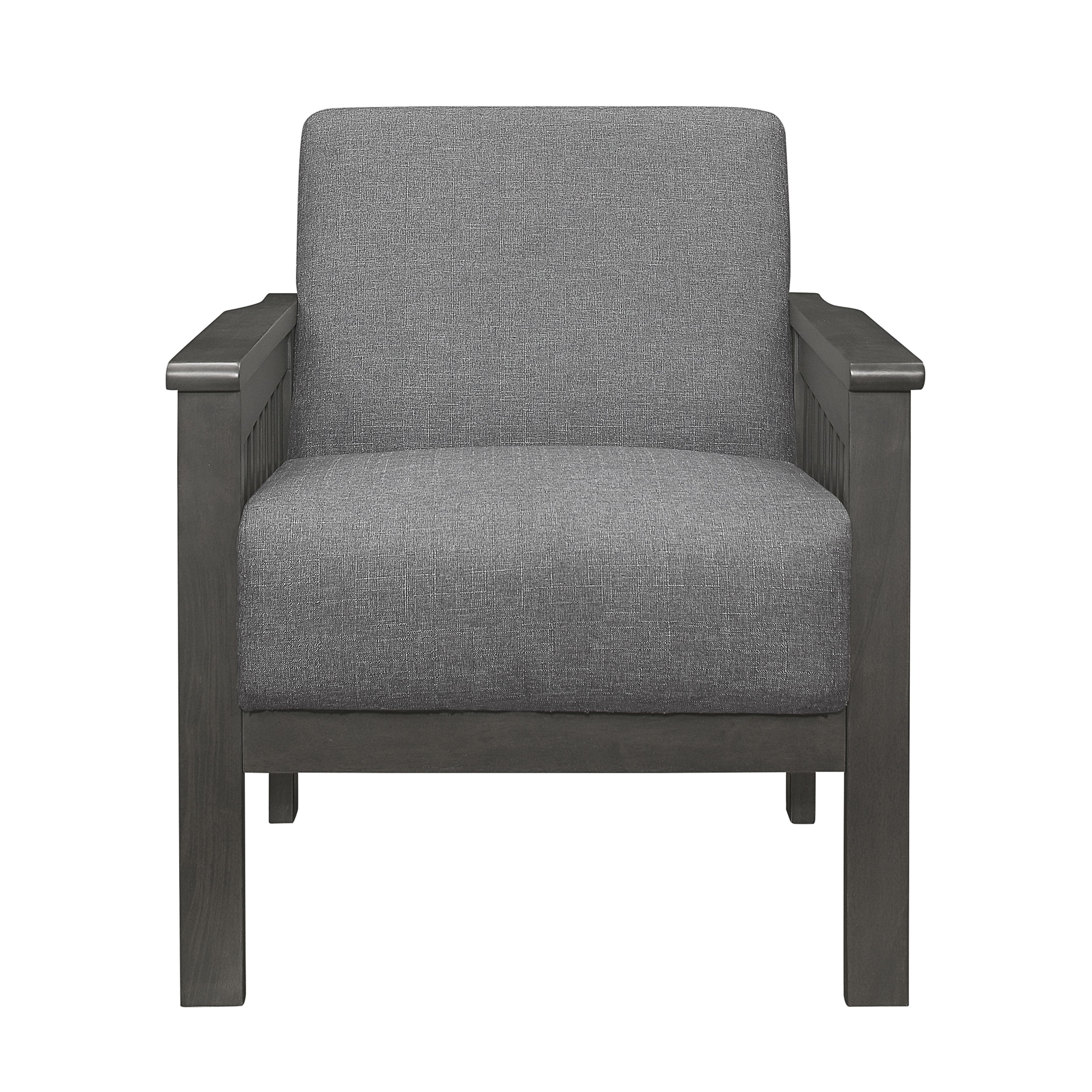 Designed with inspiration from the Arts & Crafts movement, the Lewiston Collection will be a classic addition to your home's décor. The chair's transitionally styled legs and vertical slat-supported wood arms are finished in an antique gray, providing complementing contrast to the gray linen-like fabric covering.PRODUCT DIMENSIONS: Overall Dimension: 27.5" x 31" x 32"HSeat Width: 22"Seat Depth: 21.5"Seat Height: 19.5"Arm height: 24.5"Listing Includes: One Accent Chair Only.Sofa & Loveseat: Not included.Simple Assembly Require.