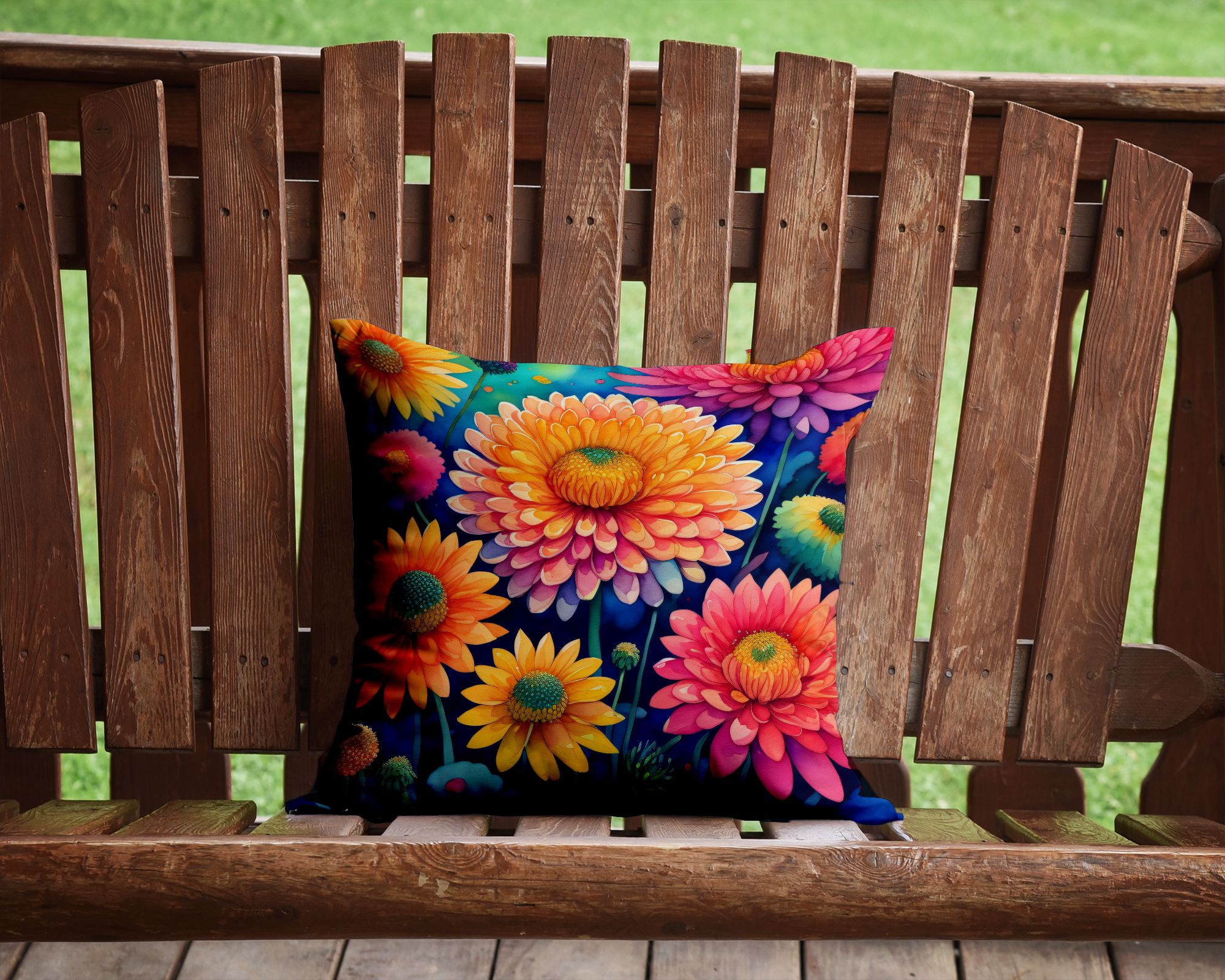 Home > Colorful Chrysanthemums Throw Pillow Machine Washable, Indoor Outdoor Decorative Pillow for Couch, Bed or Patio, 14Hx14W